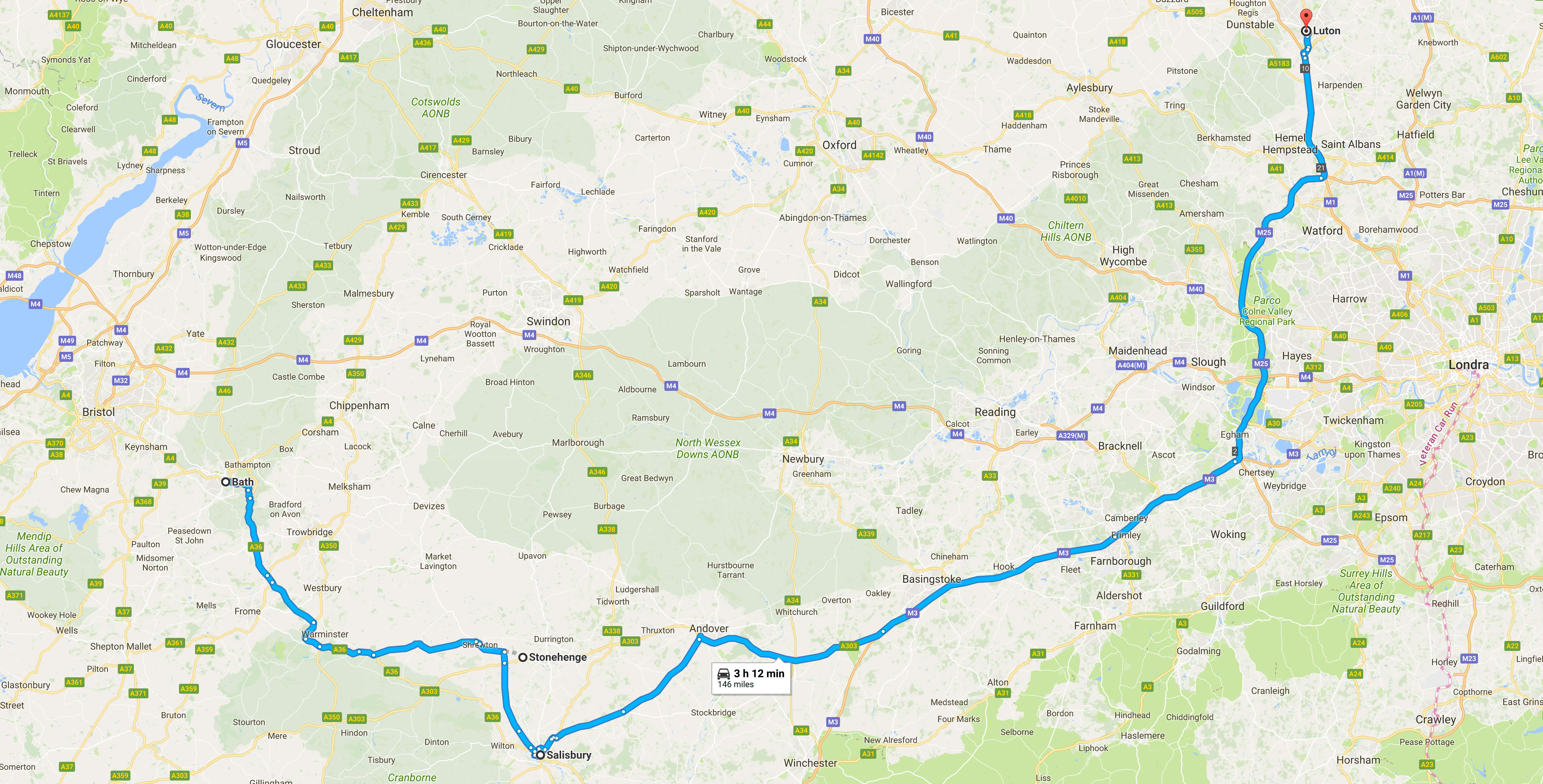 Lasciamo Bath per andare verso Londra, ma la prendiamo larga.