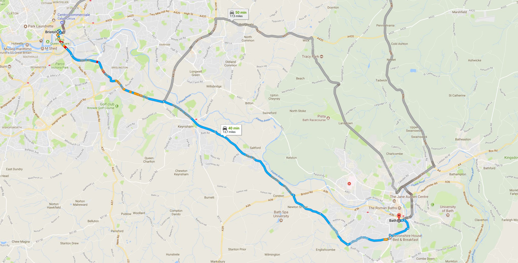 Hotel: Devonshire House. Comodo se si ha un’auto con cui viaggiare, altrimenti è a circa 15 minuti di cammino dal centro di Bath (all’andata – diventano 30 al ritorno perché è in salita).