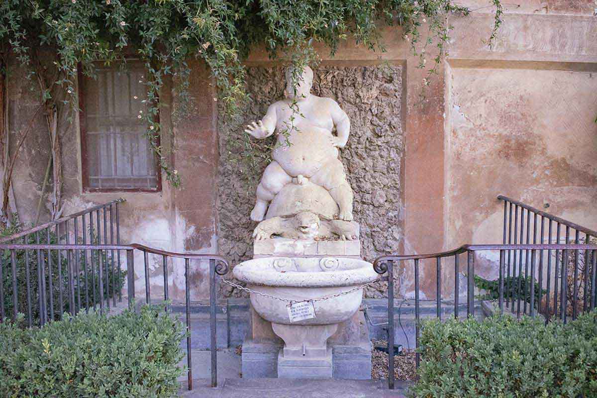 La riconoscerete immediatamente, non per la sua forma irregolare, ma perché vi sorge al centro la Colonna della Giustizia, proveniente niente di meno che dalle terme di Caracalla di Roma.